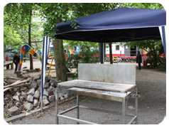 Weiterhin gibt es einen großen Innenhof, auf dem sich neben dem Spielplatz auch Grillstation und Raucherecke befinden. Pavillions bieten hier auch bei Regen Schutz. Auf dem Spielplatz können sich die Kleinen bei gutem Wetter amüsieren.