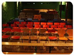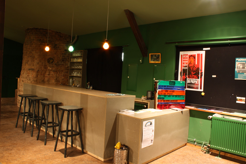 Für die Veranstaltung wird das Kino im ersten Stock zur Verfügung stehen. Es handelt sich hierbei um einen vollständig eingerichteten Kinosaal, der ca. 100 Gästen Platz bietet. Der Zuschauerraum erhöht sich nach hinten, so dass selbst die letzten Reihen eine hervorragende Sicht genießen. Im Zuschauerraum befindet sich eine ausreichend große und komplett eingerichtete Bar. Auf derselben Ebene befindet sich der Toberaum, in dem die Kinderbetreuung bei schlechtem Wetter stattfindet.